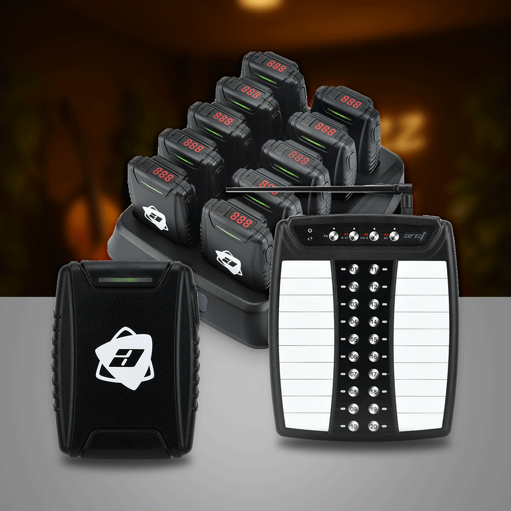 The SP-01PRO is a compact, ergonomically designed receiver tailored for on-site service staff. With its sleek, curved body and clean lines, it combines aesthetic appeal with functionality. The anti-slip side grip ensures a secure hold, while the S-shaped back clip allows easy attachment to a vest or belt—making it a convenient, space-saving companion for restaurant staff.