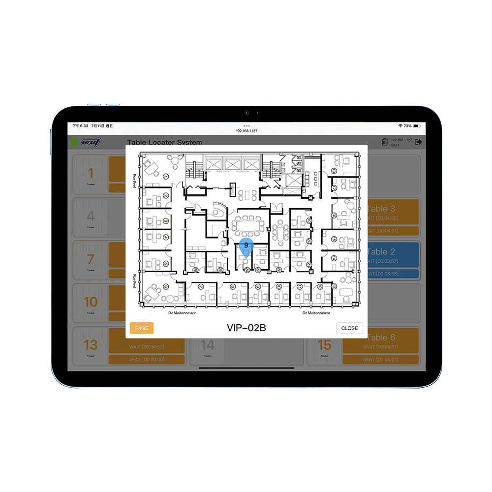 After placing an order, the customer receives a GP-02TL locator device (similar to a traditional number tag) and freely selects a seat. They simply place the locator on the designated table area. Once the food is ready, the system immediately displays the corresponding table number and location, allowing staff to deliver the meal quickly and accurately—no need to search for the customer.