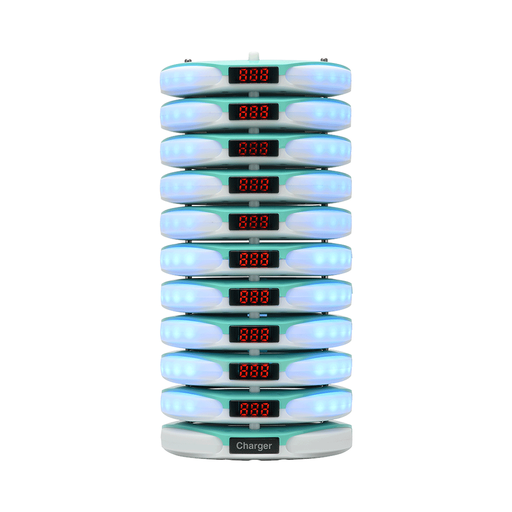 The GP-02PRO Pastel Series guest pager combines eye-catching aesthetics with intelligent design. Featuring a sleek white body paired with four vibrant top covers—Neon Green, Neon Orange, Neon Yellow, and Tiffany Blue—it adds a lively, stylish touch to any service space. Its stackable charging design requires only a 10 cm footprint, helping to maintain a clean and organized counter area.